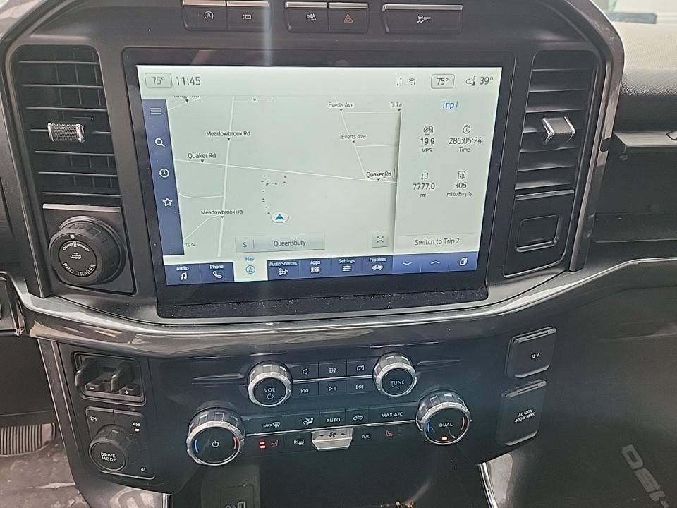 The exterior of this F-150 XLT is enhanced with a bold and distinctive style, featuring a 2-bar style grille with chrome accents, body-color front and rear bumpers, and black angular step bars. The interior offers premium comfort and convenience, with features like heated front seats, a 10-way power driver's seat, and a large 8-inch productivity screen in the instrument cluster.