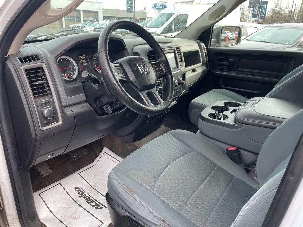 Inside, the Tradesman offers a well-appointed interior with features like the Uconnect 5.0 infotainment system, SiriusXM satellite radio, and a rearview camera for added convenience and connectivity. The durable cloth 40/20/40 split bench seat and carpeted floor covering provide a comfortable and practical cabin environment.